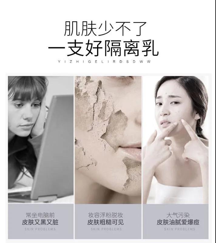 修润肤色,逆袭“镁光”肌 成为行走的发光体 # 底妆隔离效果升级UP # # 树立肌肤保护网,KO外界侵袭 # 美妆派 隔离浓妆伤害,减少彩妆残留 素颜派 抚平毛孔,长久保持肌底白里透光 # 四大功效保驾护航 拯救肌肤“危机”# ☆防晒 肌肤长效防护罩,有效隔离紫外线 ☆修颜 调整修正肤色,达到自然润色的效果 ☆靓肤 改善暗哑肌肤,遮盖遮瑕,自然提亮 ☆遮瑕 亮泽肌肤,防止肌肤暗沉,绽放自然妆容 # 三重护肤能量# 物理隔离,擦完随时可以出门,防蓝光手机电脑的刺激,防晒、修颜、靓肤、遮瑕一步到位,有效缓解外界对肌肤的伤害,形成一道无形的肌肤“保护衣”。 富含维生素E和角鲨烷,给肌肤形成皮肤保护屏障,强效防晒,有效保护皮肤不受外界物质的侵害。 渗透力极强,调整肌肤的水油平衡,质感轻盈,不会堵塞毛孔;改善肌肤粗糙、暗沉,恢复肌肤原本的柔嫩触感。 # 试用测试# # 使用方法 #